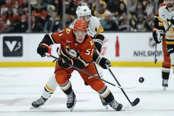 After Ducks rookie forward Beckett Sennecke poked a puck away from Penguins defenseman Kris Letang in Pittsburgh’s left circle, Ducks defenseman Pavel Mintyukov claimed possession at the near point, surged forward a bit, then slid a cross-ice pass just inside the opposite dot where Gauthier pumped a one-timer past Jarry’s glove on the near side. Assists were merited by Mintyukov and Sennecke.