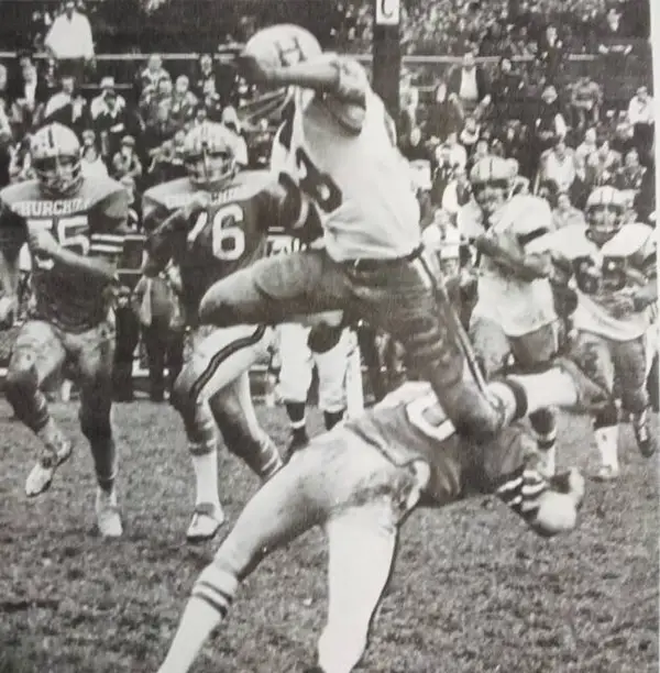 In a game delayed a day by rain, Chuck Sypula scored two touchdowns for Highlands and a 2-point conversion pass attempt by Churchill misfired, giving the Golden Rams a 14-13 victory on Oct. 18, 1975.