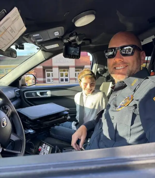 Egli showed Austin the various operations of the police car, including how to use the lights and camera.