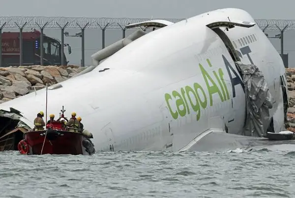 The Boeing 747 involved in the deadliest airport incident in the financial hub in more than 25 years also fell into the water and was partially submerged, but all four crew members on board escaped.