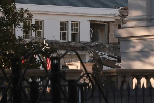 Images show a backhoe tearing into the side of the East Wing facing the Treasury building, despite Trump’s pledge in July that the ballroom wouldn’t impact the existing White House structure.