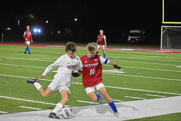 Out of intermission, Mt. Pleasant showed deliberateness in its attack and struck again on a perfectly executed play. Grant Zahrobsky, ever the playmaker for the Vikings, took the ball wide and sent a cross in front to Showman, who buried it for a 2-0 lead.
