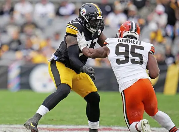 That effort included shutting out Cleveland All-Pro Myles Garrett, who walked away from Acrisure Stadium with no sacks and two tackles two weeks ago.