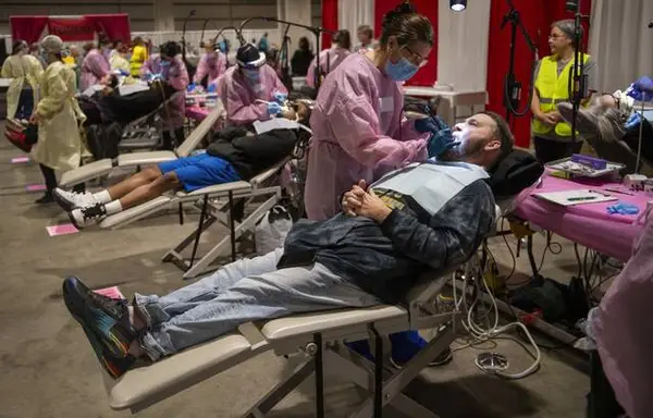 Nearly 2,000 dentists, clinicians, opticians, ophthalmologists, nurses, imaging technicians and other volunteers will be on hand, according to the nonprofit group.