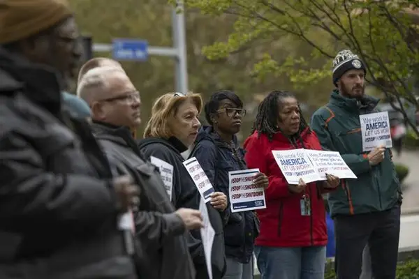 Workers called for an end to the federal shutdown that has halted some services and kept them from their jobs.