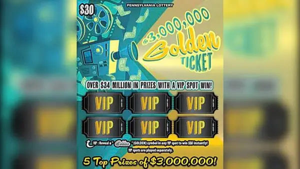 The $3,000,000 Golden Ticket is a $30 game that offers five top prizes of $3 million. Two of those prizes remain available, according to the lottery.