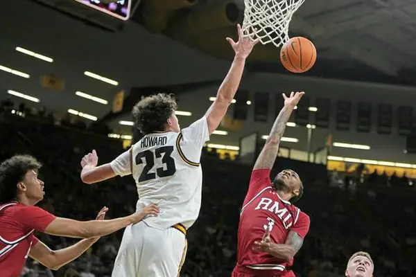 Chitikoudis, a 6-9 transfer from North Carolina A&T, grabbed nine rebounds to lead RMU, whose 25 boards nearly equaled Iowa’s total of 26. But it didn’t figure in the outcome. The Colonials wound up shooting 47.9% (23 for 48) and made 11 of 24 (45.8) from behind the arc.