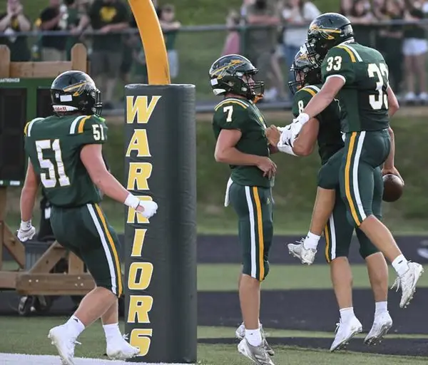 Down by five, the Warriors forced a punt and got the ball back with 58 seconds left and no timeouts. They drove 95 yards to stun the Tigers after Landyn Stikkel caught a 15-yard touchdown pass from Nate Desmond with 6.8 seconds left.