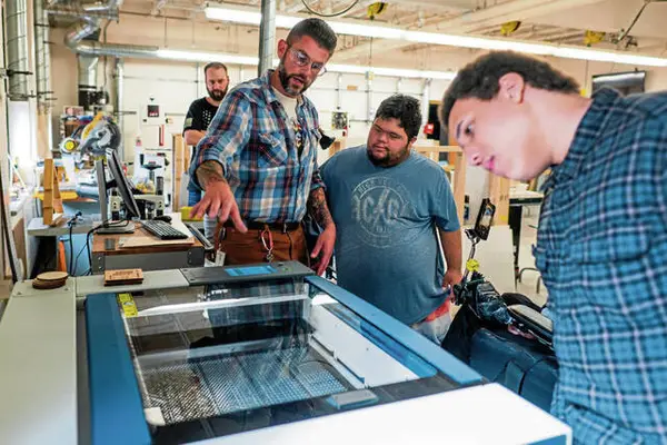 Students can create a design on a computer in an adjacent room and send it to the CNC machine, which will then cut wood and plastics to their specifications. The laser engraver will allow learners to personalize things like cups, coasters and much more.