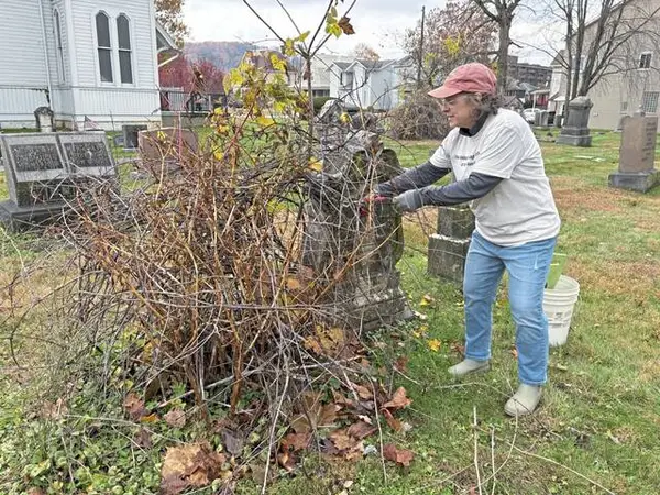 Chris Otto of Hopewell was there with his daughter, Brooke, 13, a player with the Pittsburgh Lady Roadrunners, a softball team. While she cleaned headstones, he was trimming with a weed whacker.