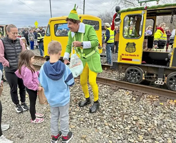 A crowd of people gathered at the train tracks along Depot Street to see a caravan of about 25 railcars decorated for the holidays.