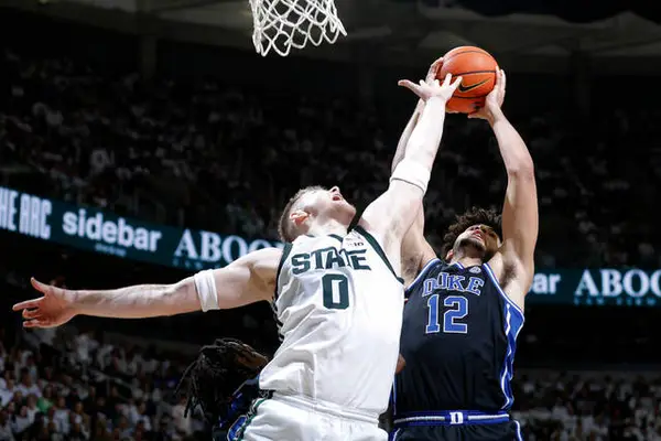 EAST LANSING, Mich. — Cameron Boozer scored 18 points, including 16 in the second half, and Caleb Foster added 12 points Saturday to help No. 4 Duke hold on for a 66-60 victory over No. 7 Michigan State in a game that had the intensity of an NCAA Regional Final.