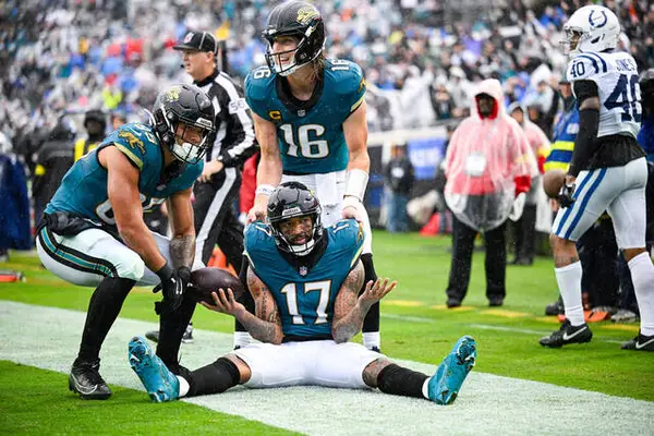Three of Lawrence’s completions gained at least 30 yards. Brian Thomas Jr. had his best game in nearly two months, finishing with three receptions for 87 yards. Etienne ran 20 times for 74 yards, scoring on runs of 3 and 28 yards.