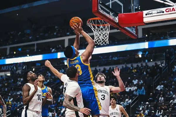 Following a tip-in by Cam Corhen, Nojus Indrusaitis deposited a jumper with 8:43 remaining, prompting a timeout by Nittany Lions coach Mike Rhoades, with Pitt in front 27-13.