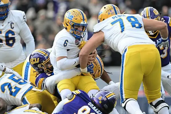 Heintschel completed 25 of his 40 pass attempts for 256 yards and a touchdown, and the Panthers recorded 120 yards on the ground, led by Turner’s 93 on 16 carries. However, Pitt was just 3 for 15 on third-down attempts while the Pirates recorded seven TFLs and four sacks.