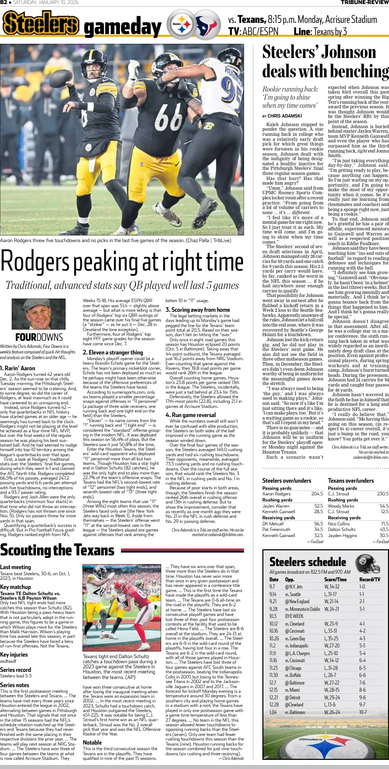• Steelers 4 Downs: Aaron Rodgers peaking at right time, Texans a rare 3-WR opponent
