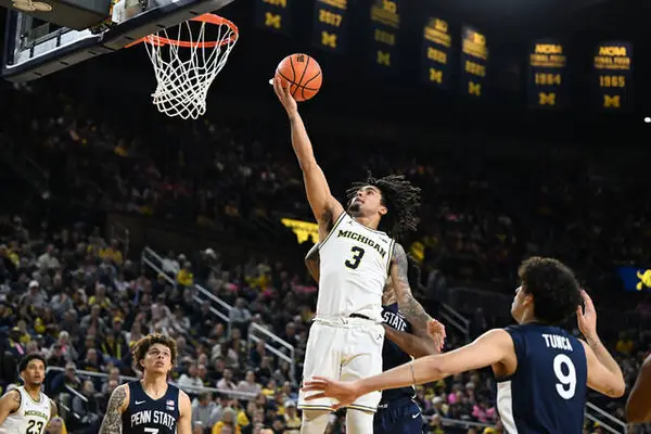 The Wolverines led 56-24 at halftime after shooting 66% from the field and making 7 of 13 3-pointers. Against an undersized opponent, they scored half their points in the paint and had 15 second-chance points.