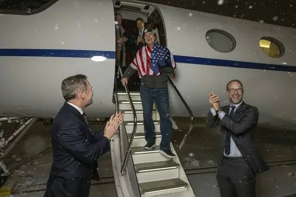 About 9:30 p.m. on Feb. 11, 2025, the private jet carrying Marc Fogel landed at Joint Base Andrews in Maryland. It was his first time on American soil since his arrest in Moscow on Aug. 14, 2021. (Courtesy of the White House)