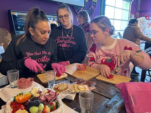 At Voodoo Brewing, Elle Oakes of New Kensington got instruction from Lauren Knapp and Jenn Neilen, from Ash Taphouse, on creating a charcuterie board, which included pieces of salami molded into a rose and strawberries cut into heart shapes.