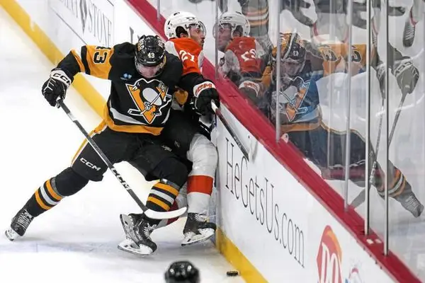 During the Penguins’ wild 7-6 home win against the Flyers, Harkins made an impact by making a thunderous impact on Flyers defenseman Jamie Drysdale.